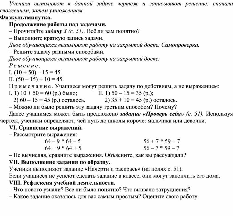 Примечание. Учащиеся могут решить задачу по действиям, а не выражением: