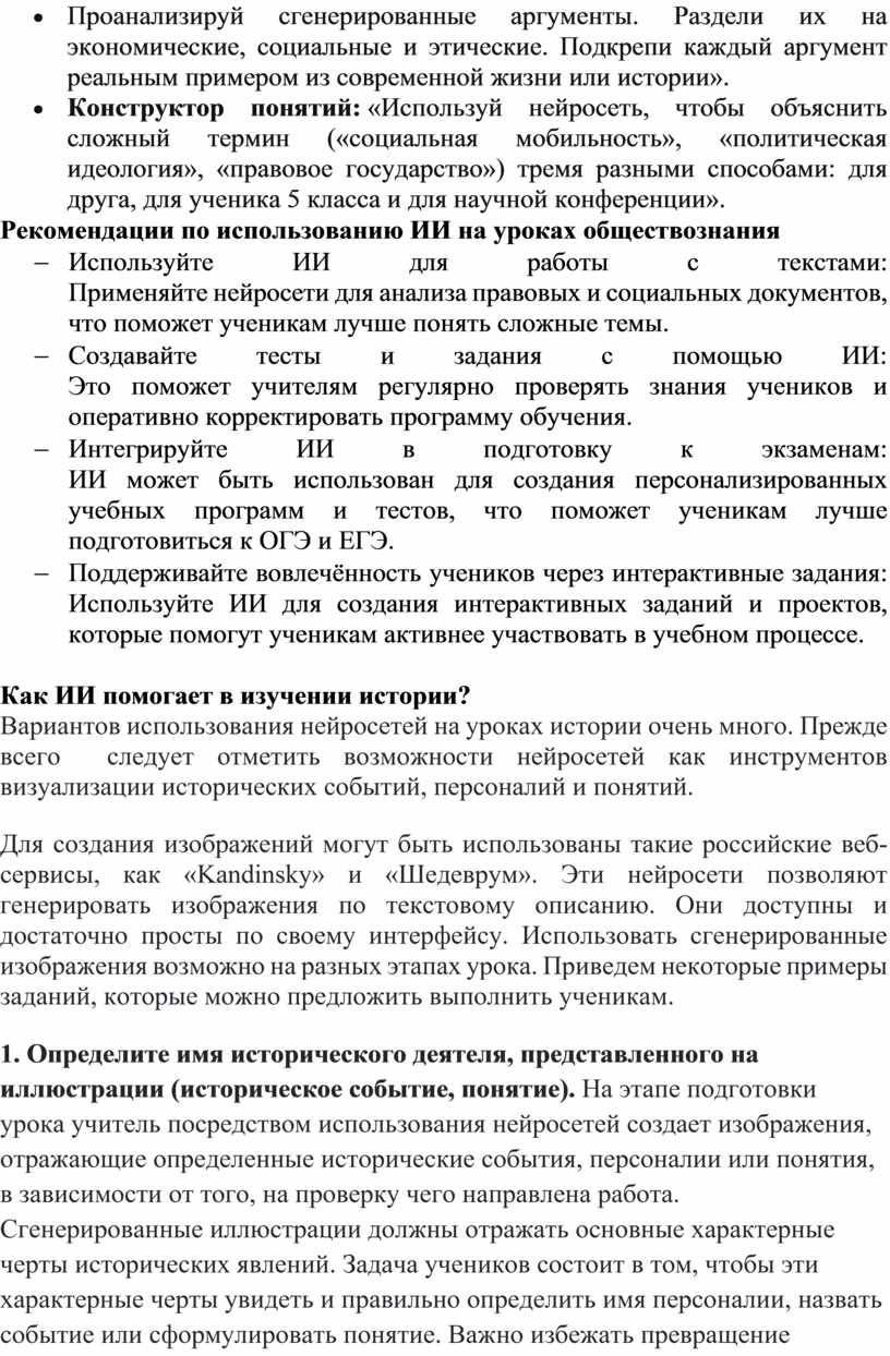 Рекомендации по использованию ИИ на уроках обществознания