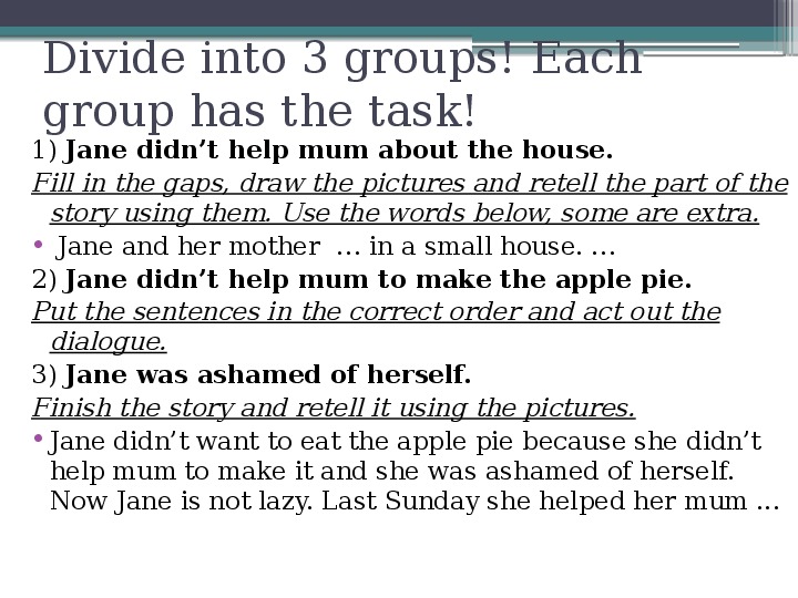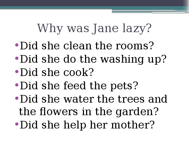 Now Jane is not lazy. Last Sunday she helped her mum ...
