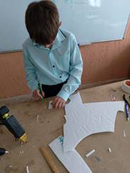 Нитки , клей ПВА. Бамбуковые шпажки, клеевой пистолет. |