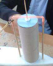 Бумажный тубус диаметром 40 мм., диски из пенопласта, палочка от леденцов, зубочистка, клеевой пистолет. |