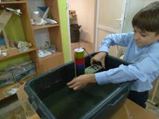 Эксперимент проводился в мастерской, в пластиковой ёмкости.