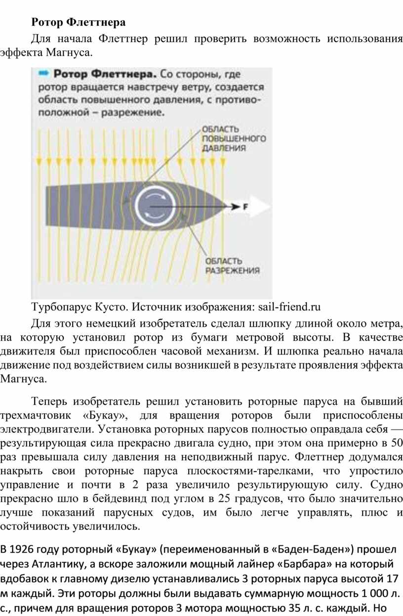 Для начала Флеттнер решил проверить возможность использования эффекта Магнуса.