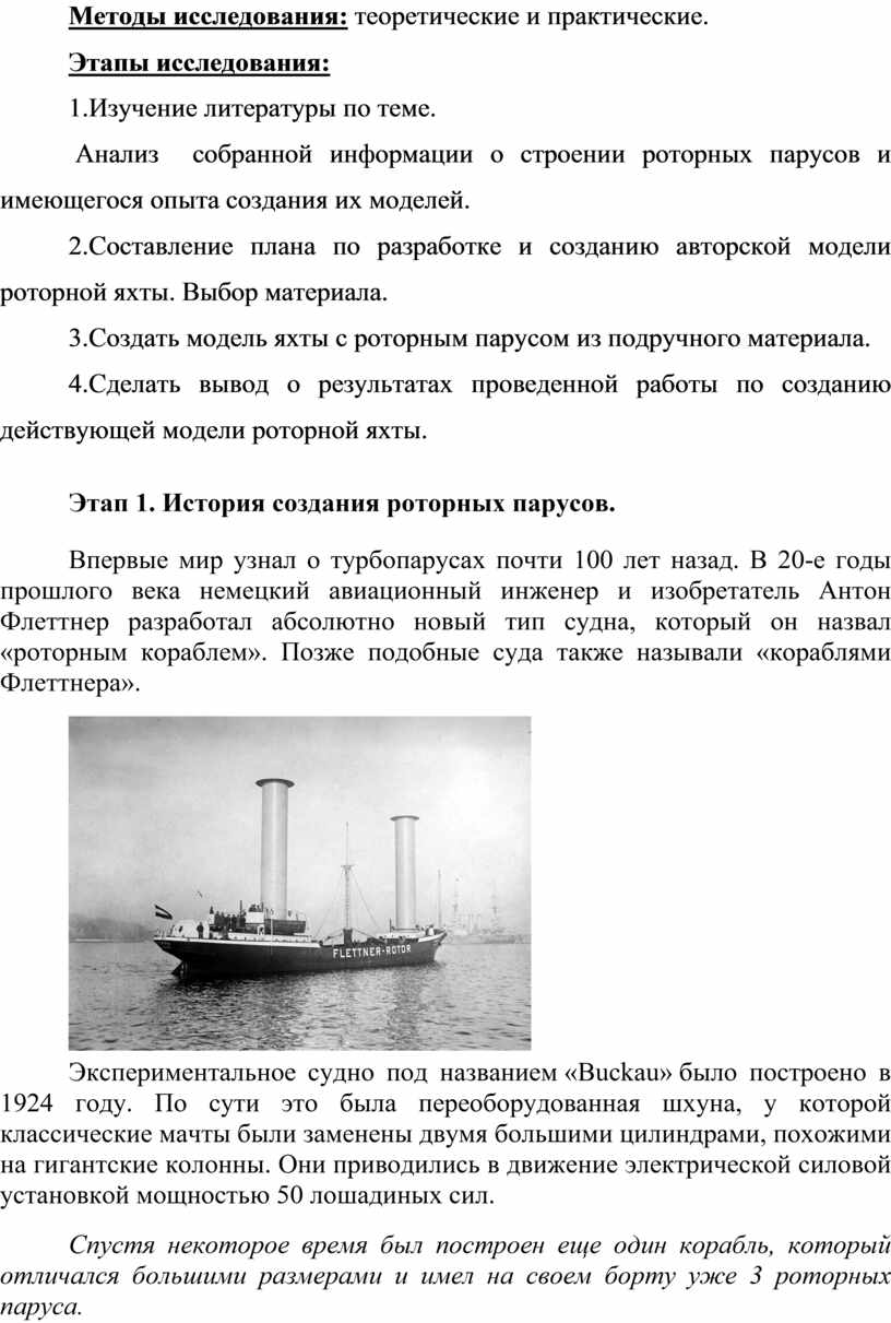 Анализ собранной информации о строении роторных парусов и имеющегося опыта создания их моделей.