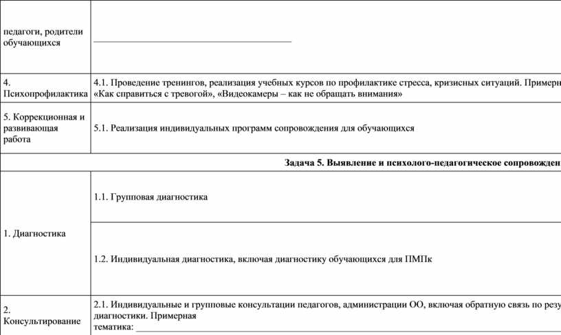 Задача 1. Психолого-педагогическое сопровождение обучающихся в адаптационный, предкризисный и кризисный периоды |