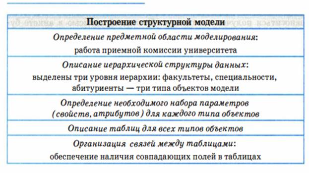 Разберем пример на построение структурной модели реальной системы. В качестве объекта для моделирования (предметной области) выберем процесс приема абитуриентов в высшее учебное заведение. Пусть это будет университет.