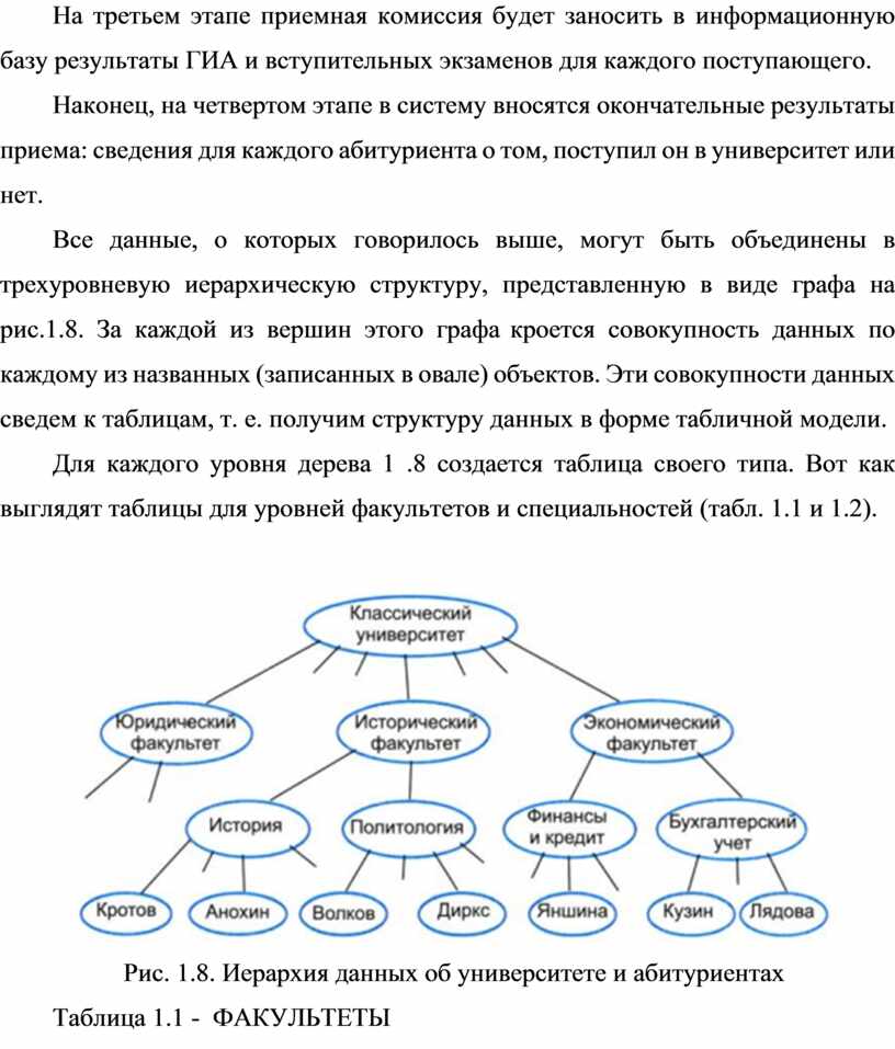 Рис. 1.8. Иерархия данных об университете и абитуриентах