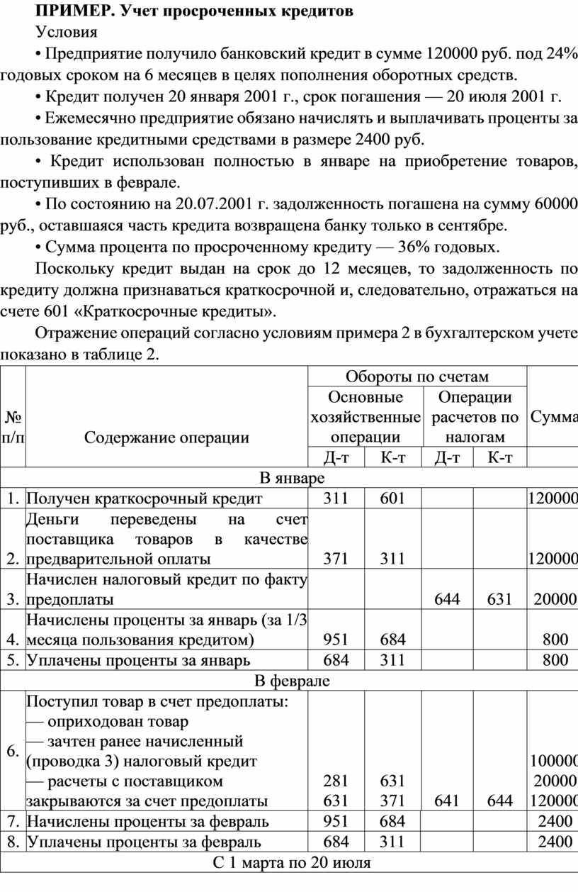 ПРИМЕР. Учет просроченных кредитов