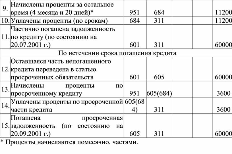 Частично погашена задолженность по кредиту (по состоянию на 20.07.2001 г.) |