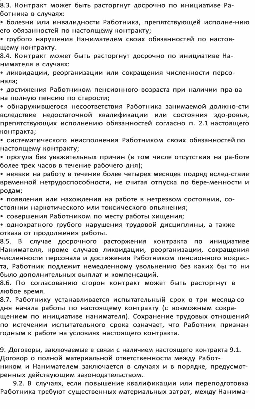 8.3. Контракт может быть расторгнут досрочно по инициативе Ра-ботника в случаях: