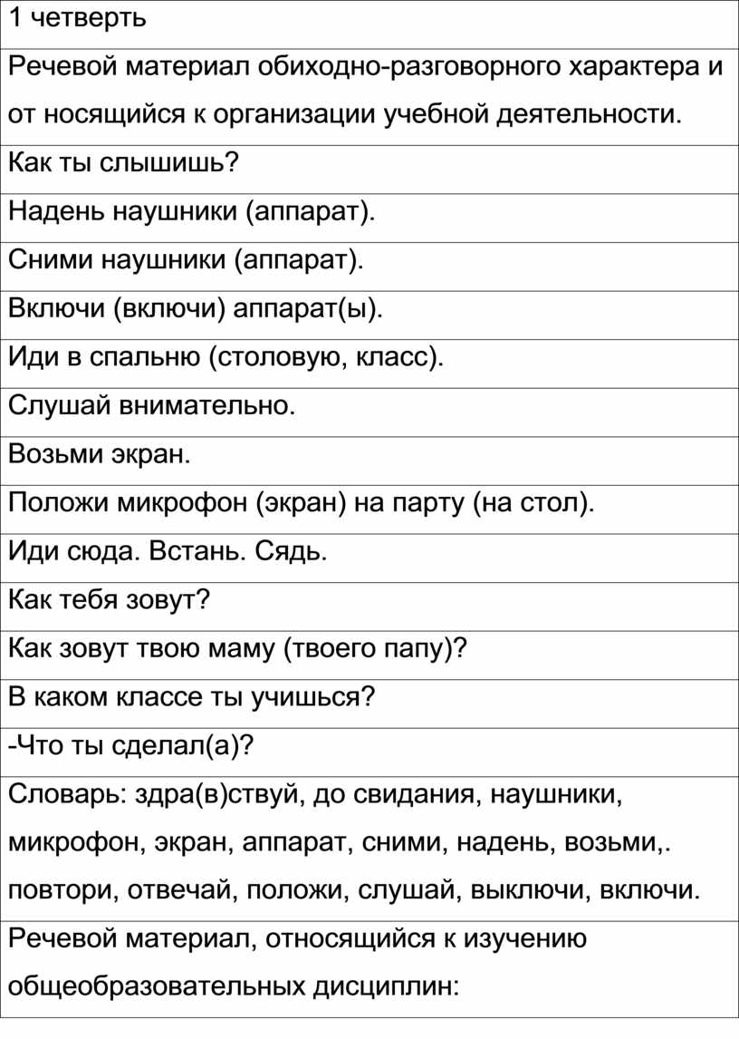 Речевой материал обиходно-разговорного характера и от носящийся к организации учебной деятельности. |