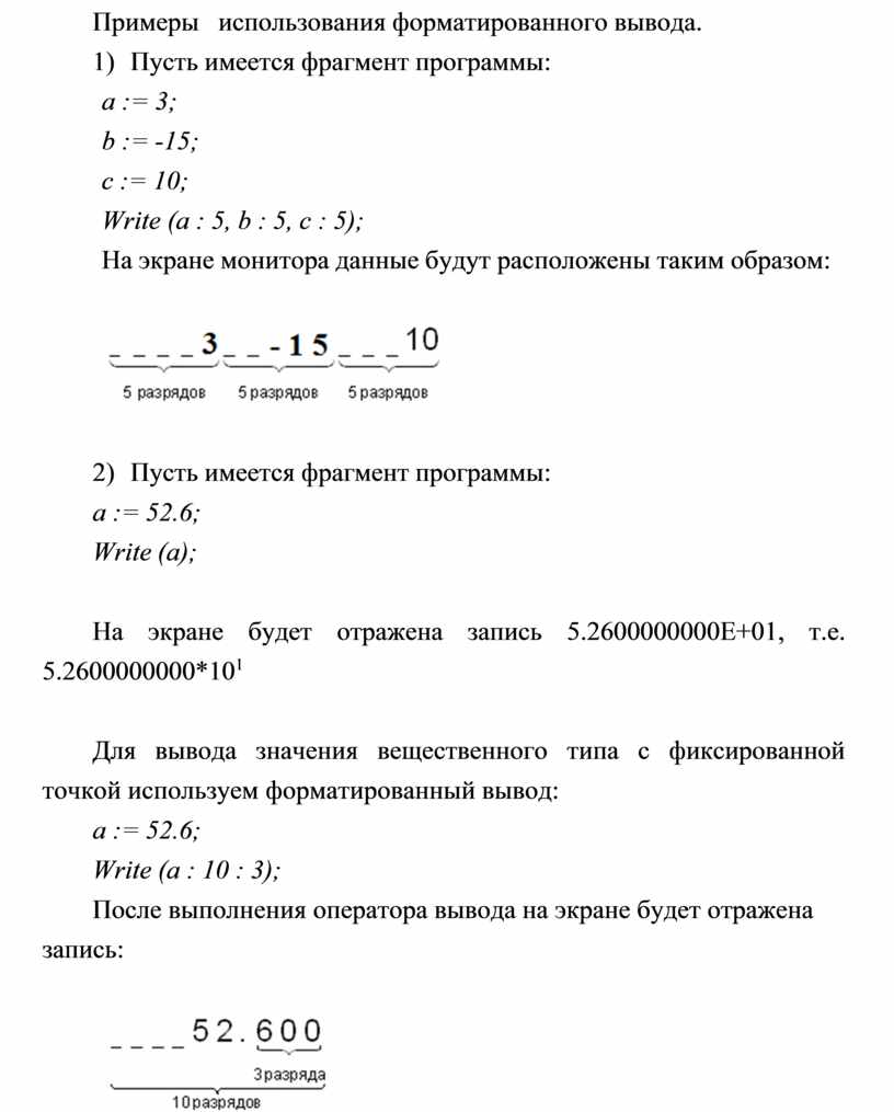Примеры использования форматированного вывода.