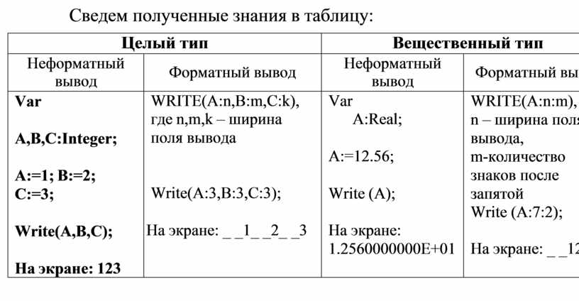 Сведем полученные знания в таблицу: