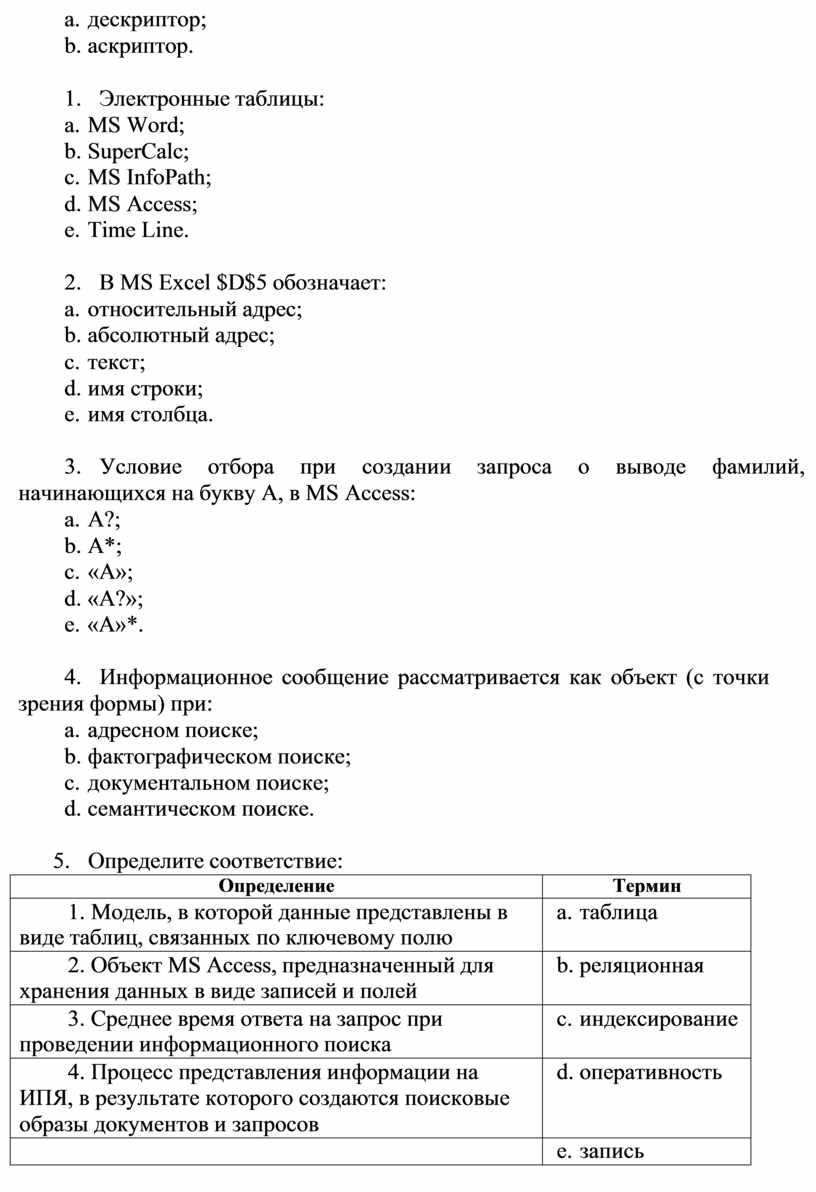 5. Определите соответствие: