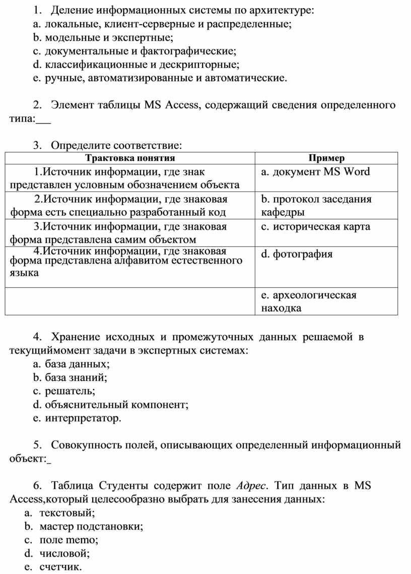 40. Таблица Студенты содержит поле Адрес. Тип данных в MS Access, который целесообразно выбрать для занесения данных: