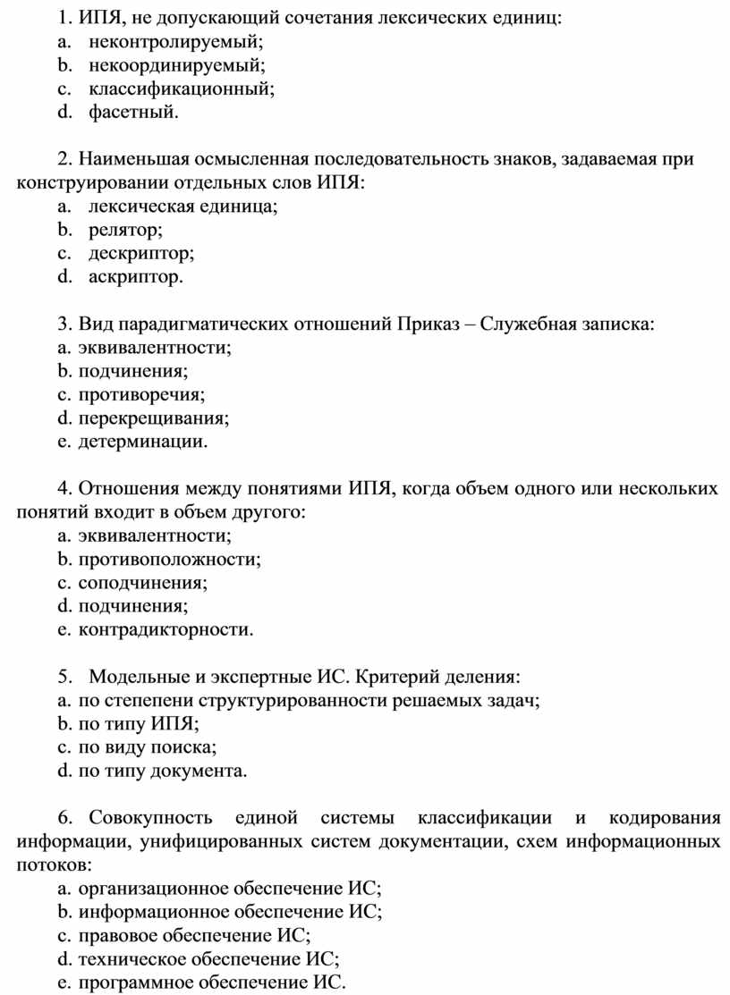6. ИПЯ, не допускающий сочетания лексических единиц: