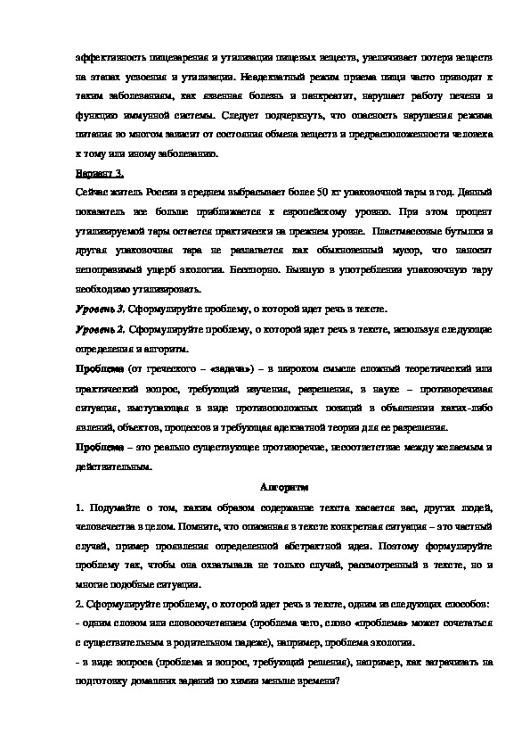 Уровень 2. Сформулируйте проблему, о которой идет речь в тексте, используя следующие