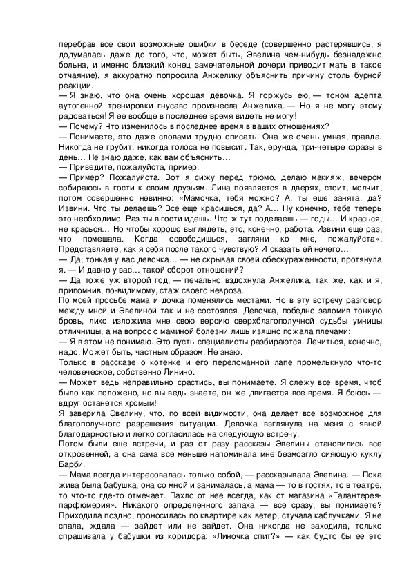 клиникой неврозов у матери. Не все ясно, правда? К Эвелине и ее проблемам мы
