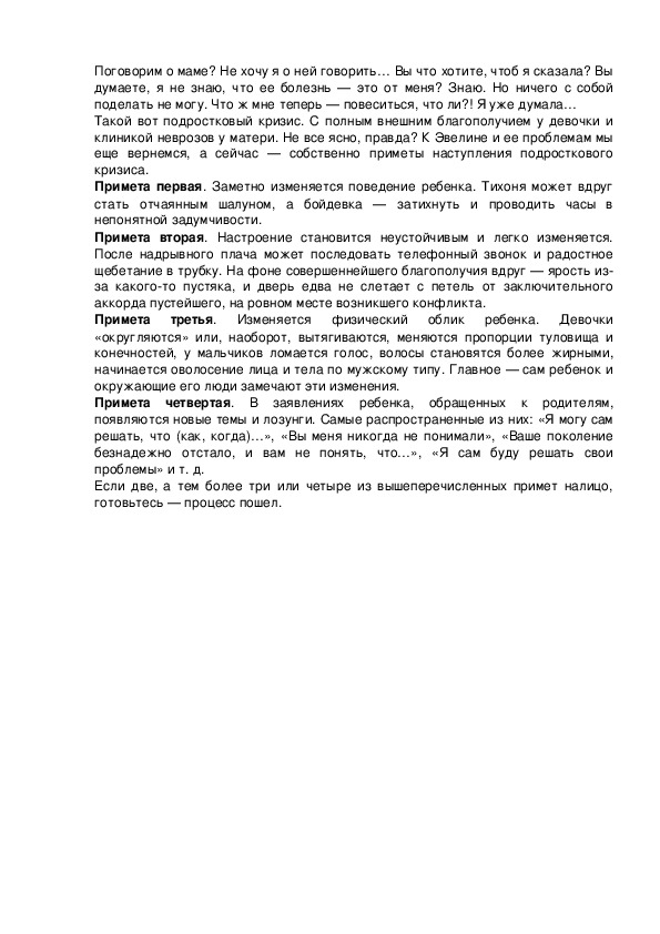 еще вернемся, а сейчас — собственно приметы наступления подросткового