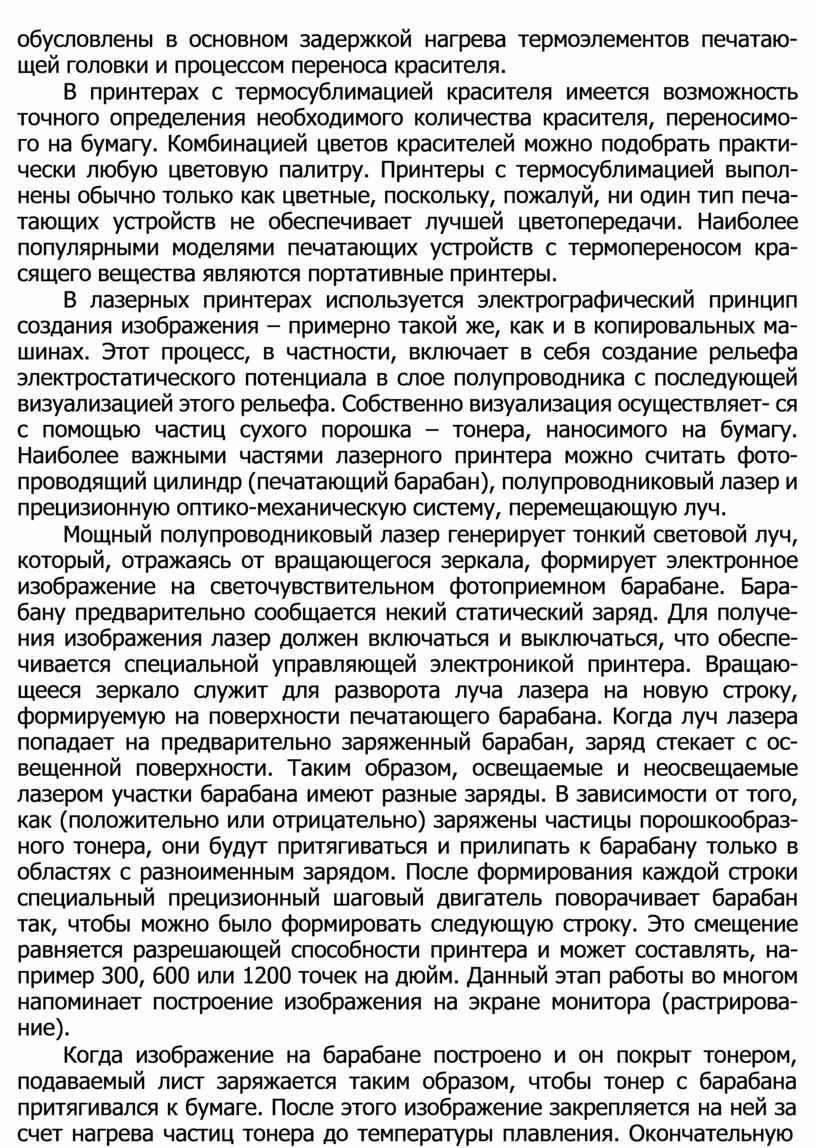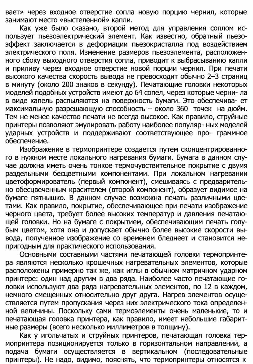Пожалуй, самым популярным устройством вывода информации для IBM-совместимых компьютеров является принтер. Все печатающие уст- ройства (принтеры) можно подразделить на последовательные, строч- ные и страничные. Принадлежность принтера к той или иной из пере- численных групп зависит от того, формирует он на бумаге символ за символом, сразу всю строку или целую страницу.