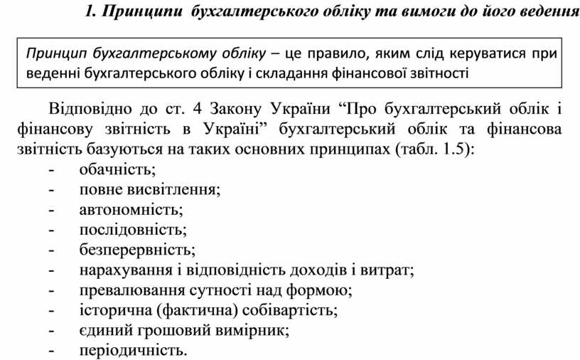 1. Принципи бухгалтерського обліку та вимоги до його ведення