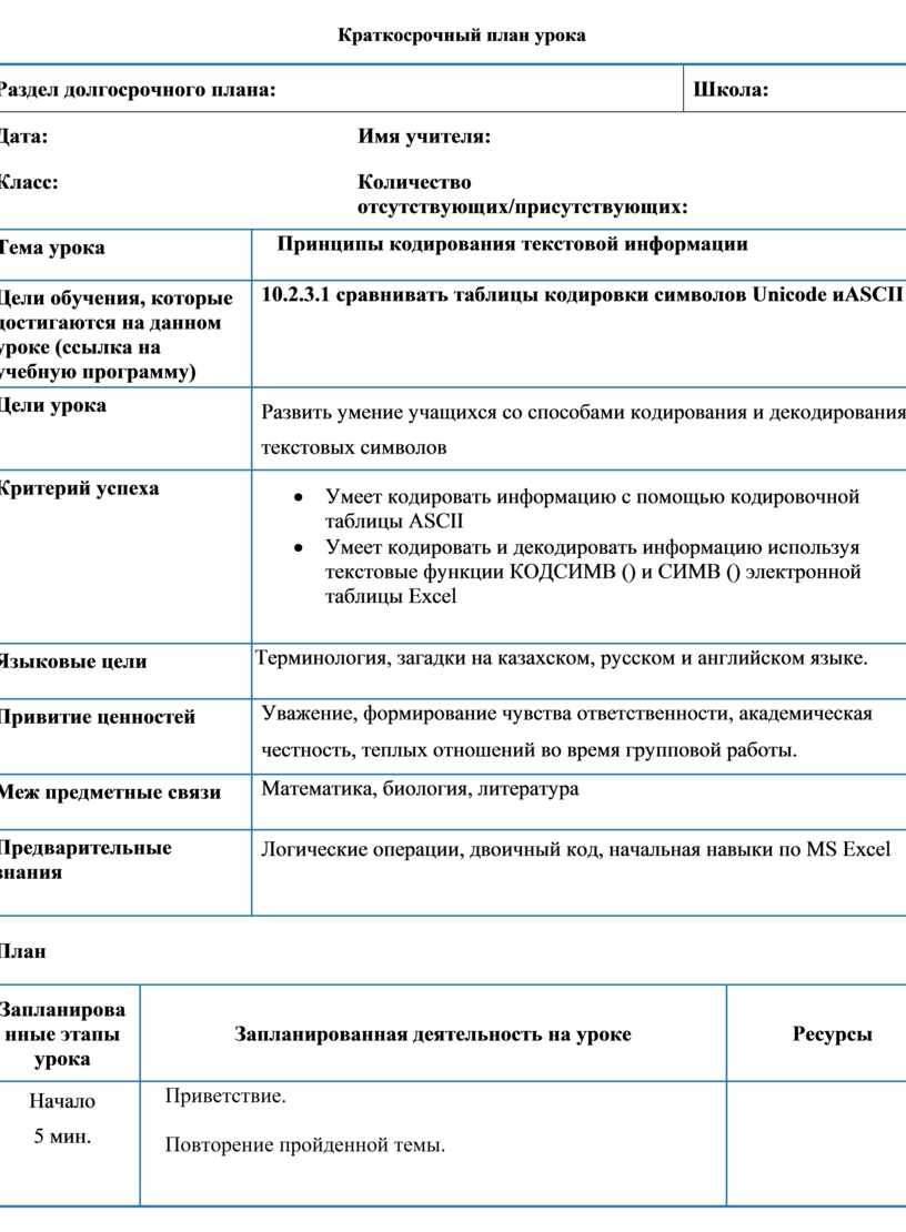 10.2.3.1 сравнивать таблицы кодировки символов Unicode иASCII
