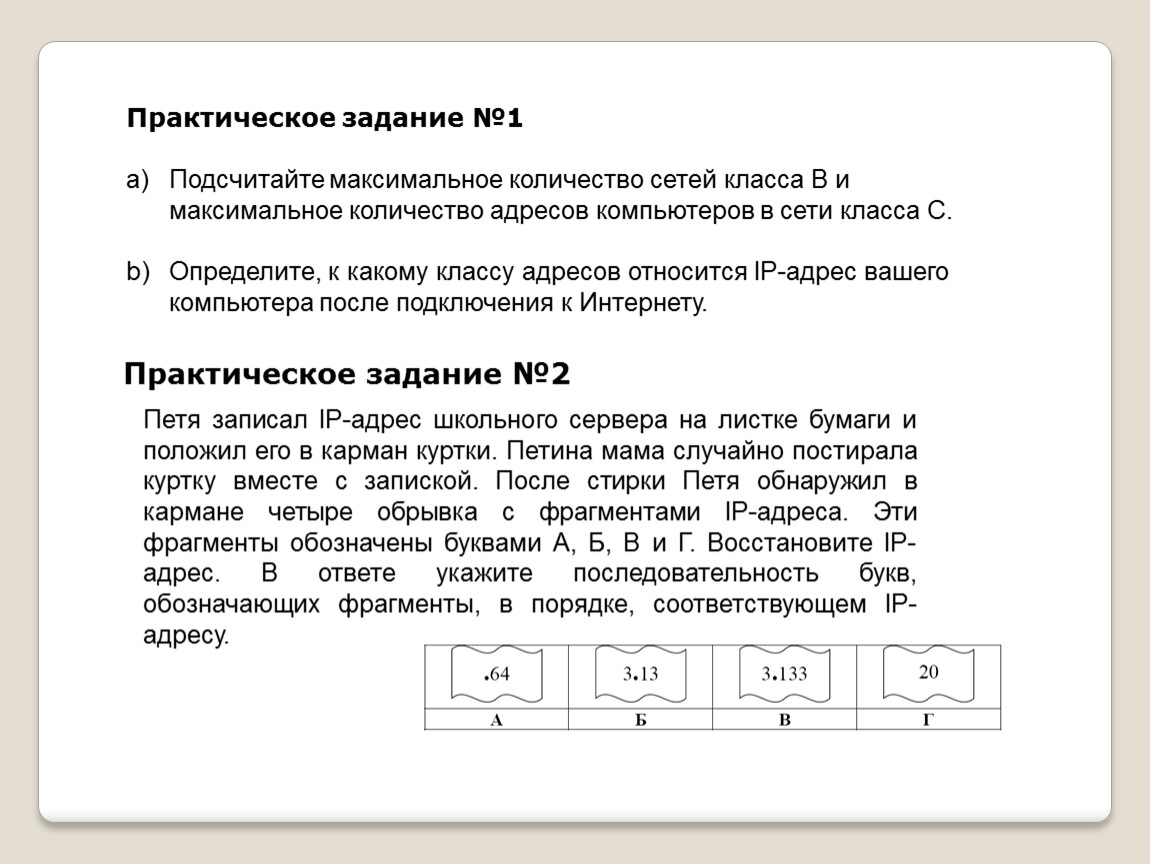 поэтому сразу определяем, что фрагмент А – самый последний, так как в противном случае одно из чисел получается больше 255 (643 или 6420)