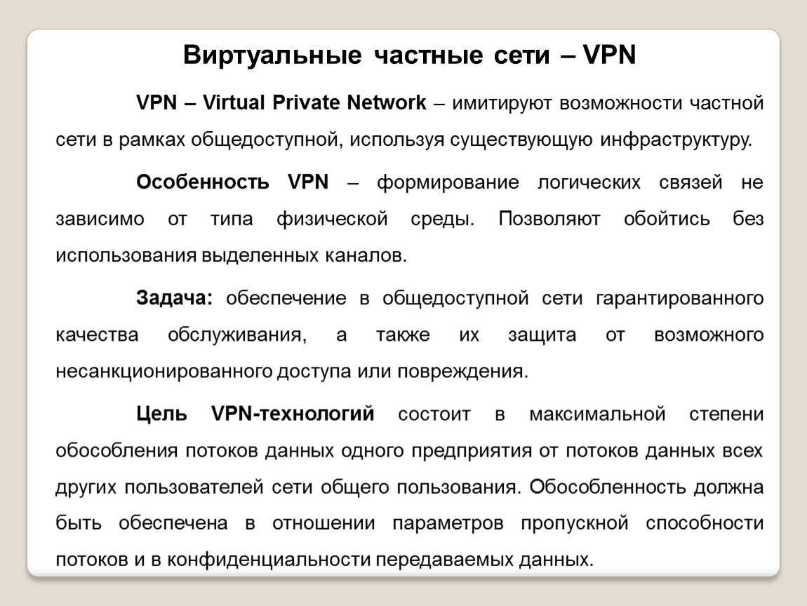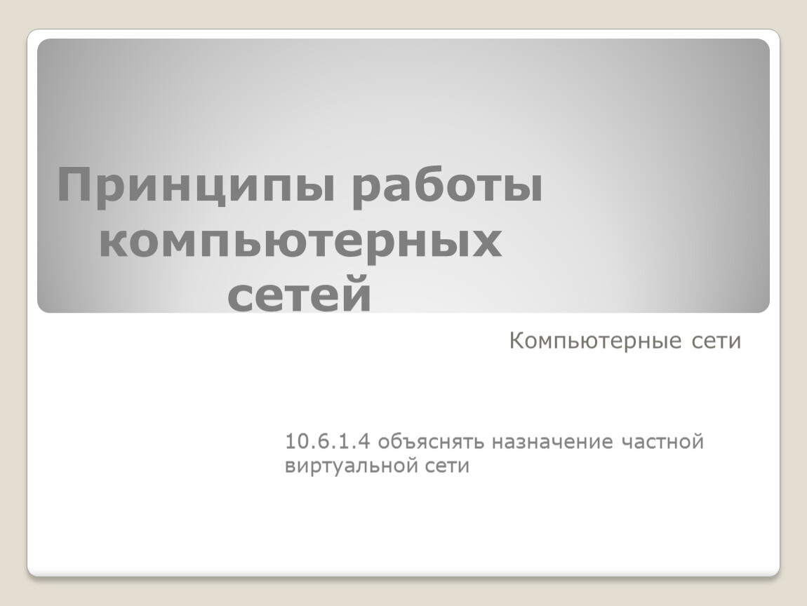 10.6.1.4 объяснять назначение частной виртуальной сети
