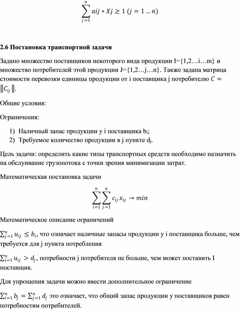 Цель задачи: определить какие типы транспортных средств необходимо назначить на обслуивание грузопотока с точки зрения минимизации затрат.