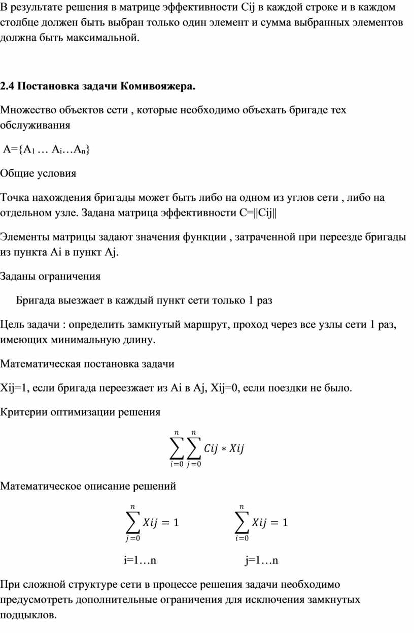 Точка нахождения бригады может быть либо на одном из углов сети , либо на отдельном узле. Задана матрица эффективности C=||Сij||