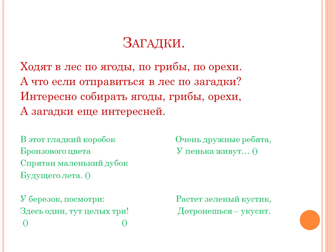 А что если отправиться в лес по загадки?
