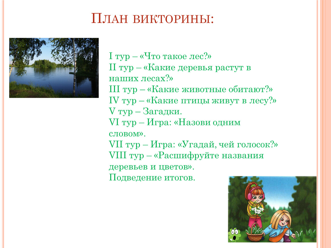 План викторины: