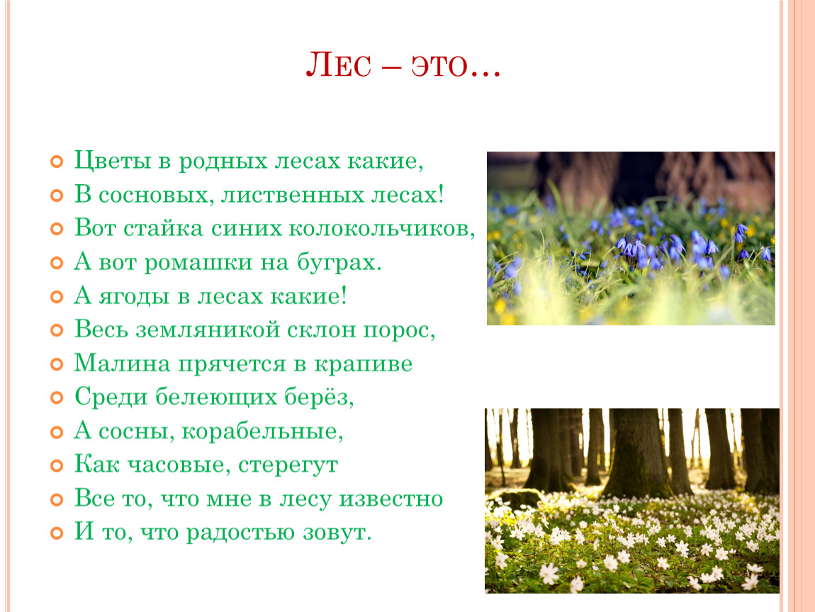Цветы в родных лесах какие,