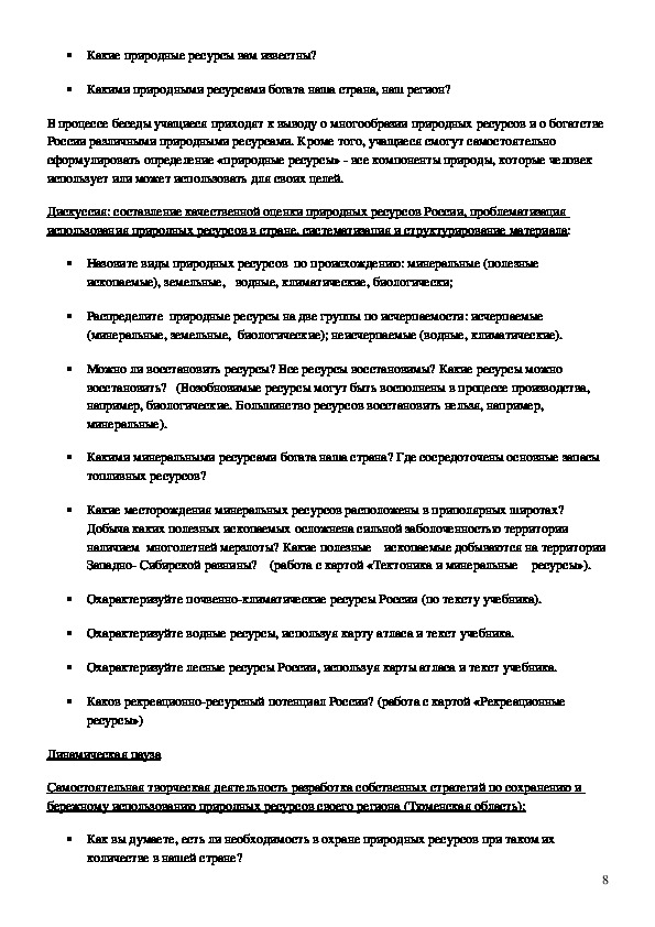 России различными природными ресурсами. Кроме того, учащиеся смогут самостоятельно