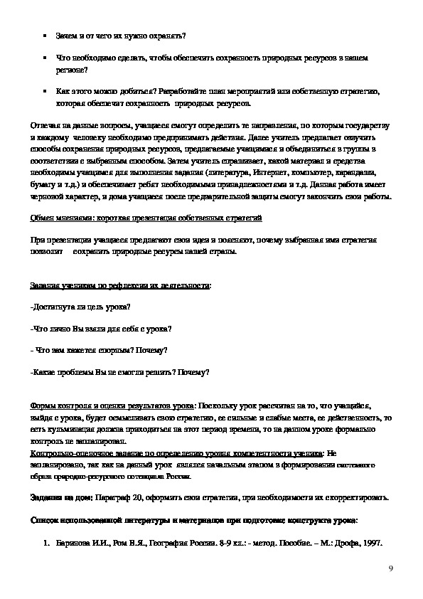 1. Баринова И.И., Ром В.Я., География России. 89 кл.: метод. Пособие. – М.: Дрофа, 1997.