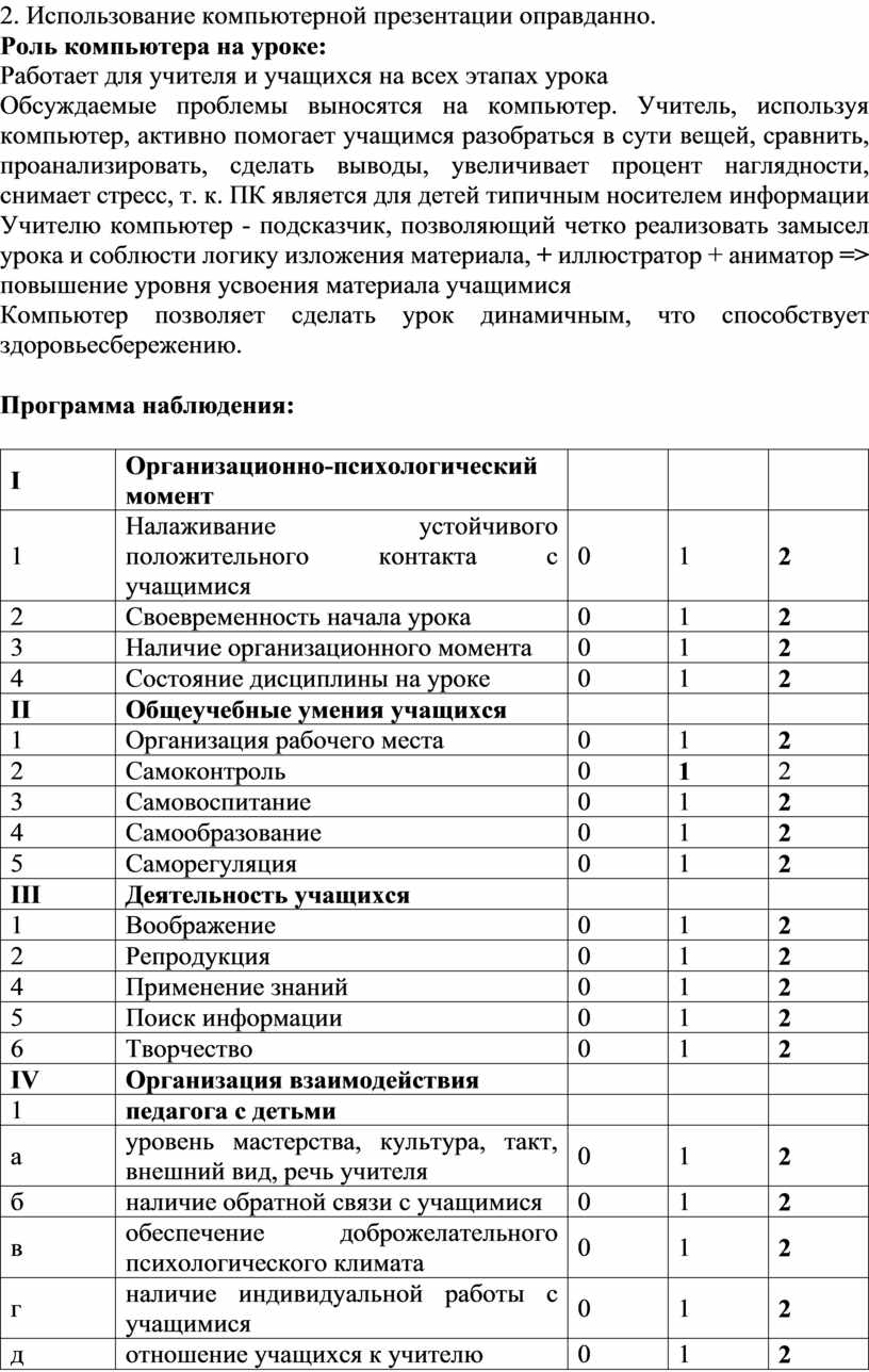 2. Обсуждаемые проблемы выносятся на компьютер. Учитель, используя компьютер, активно помогает учащимся разобраться в сути вещей, сравнить, проанализировать, сделать выводы, увеличивает процент наглядности, снимает стресс, т. к. ПК является для детей типичным носителем информации