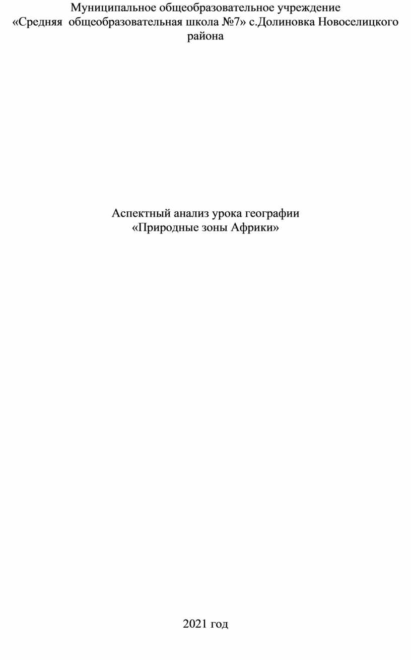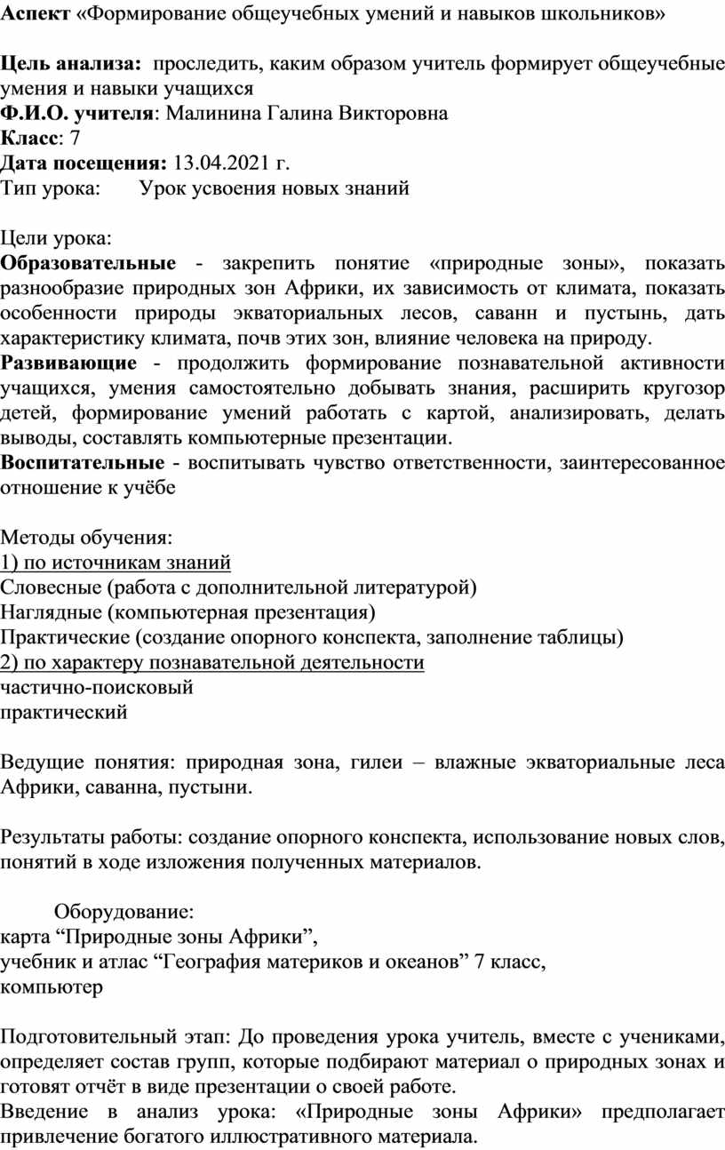 Введение в анализ урока: «Природные зоны Африки» предполагает привлечение богатого иллюстративного материала.