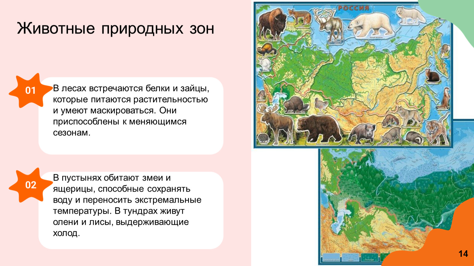В пустынях обитают змеи и ящерицы, способные сохранять воду и переносить экстремальные температуры. В тундрах живут олени и лисы, выдерживающие холод.