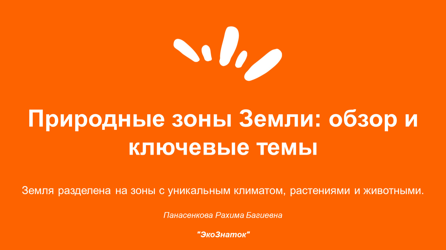 Природные зоны Земли: обзор и ключевые темы Земля разделена на зоны с уникальным климатом, растениями и животными. Панасенкова Рахима Багиевна "ЭкоЗнаток"