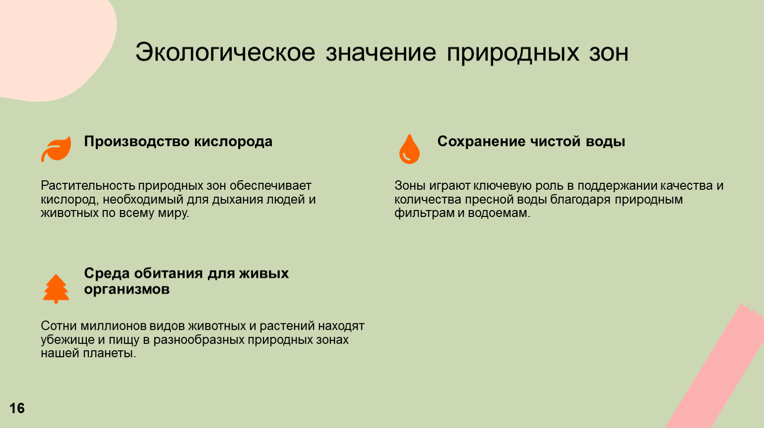 Растительность природных зон обеспечивает кислород, необходимый для дыхания людей и животных по всему миру.