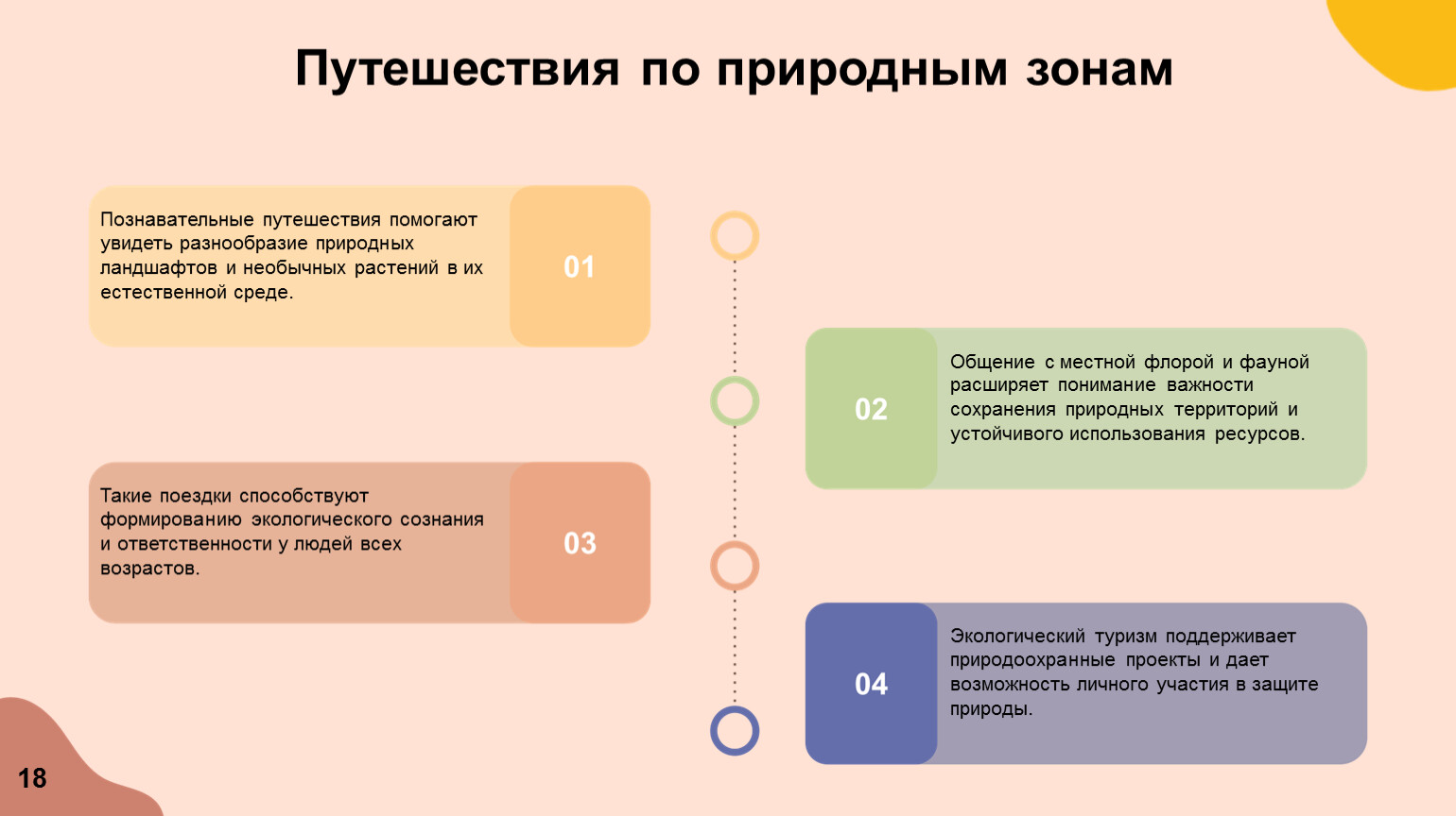 Общение с местной флорой и фауной расширяет понимание важности сохранения природных территорий и устойчивого использования ресурсов.