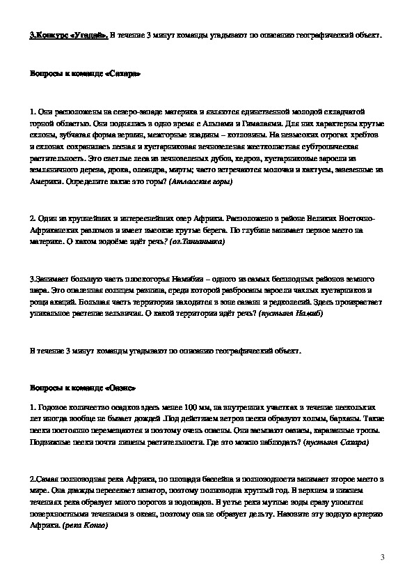 23.Конкурс «Угадай». В течение 3 минут команды угадывают по описанию географический объект.