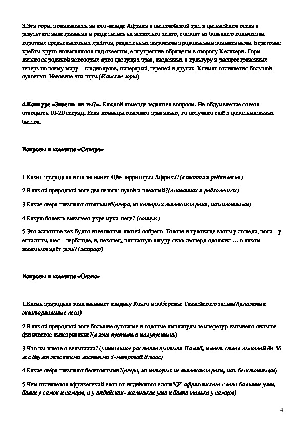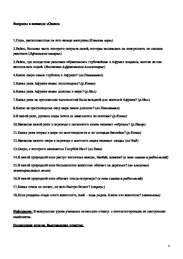 1.Закрепить знания и расширить кругозор учащихся о природе Африки;