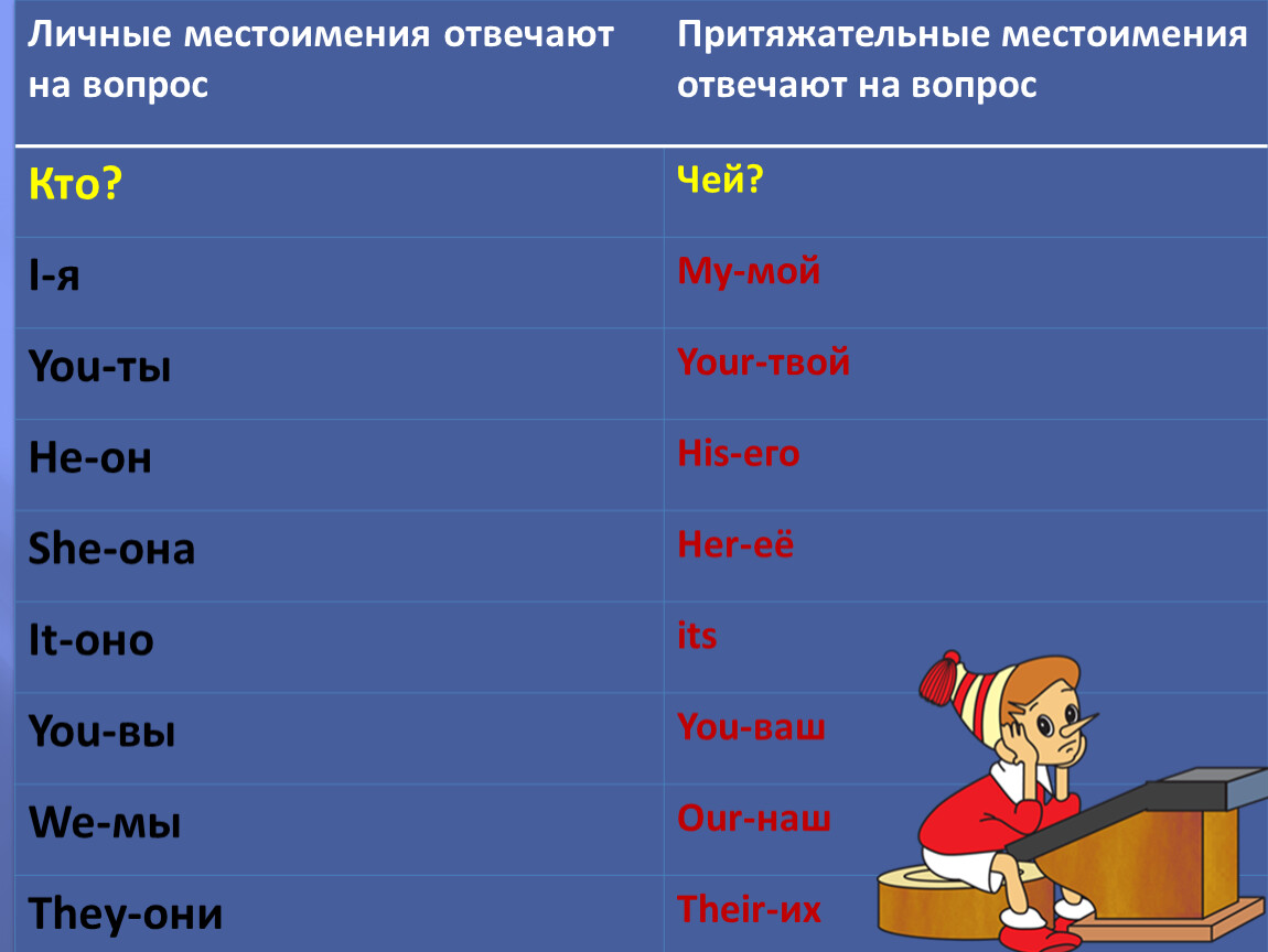 Личные местоимения отвечают на вопрос | Притяжательные местоимения отвечают на вопрос |