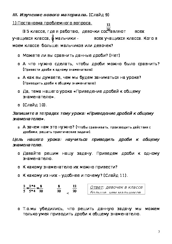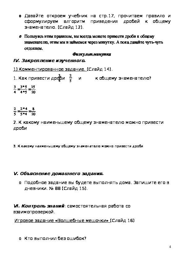 знаменателю. (Слайд 12).