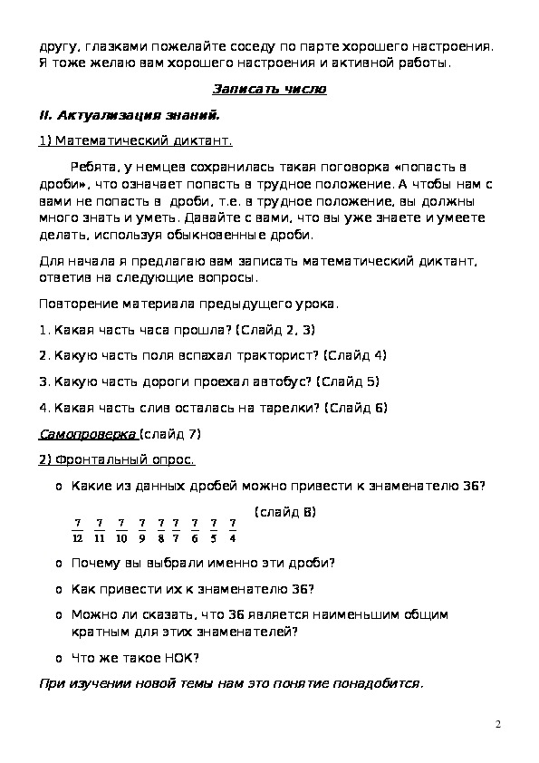 o научить учащихся приводить дроби к общему знаменателю.