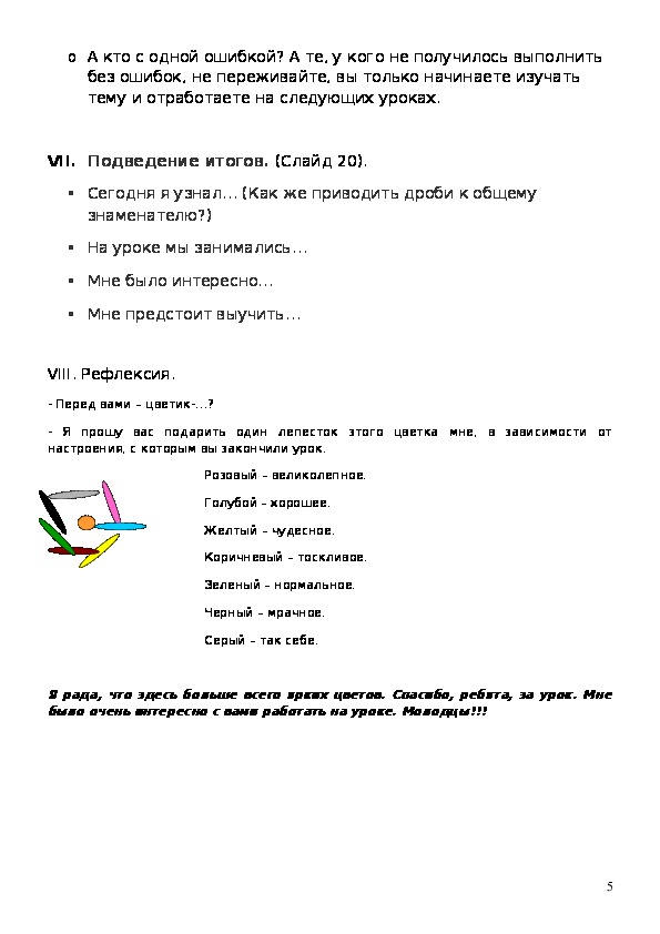 Я рада, что здесь больше всего ярких цветов. Спасибо, ребята, за урок. Мне