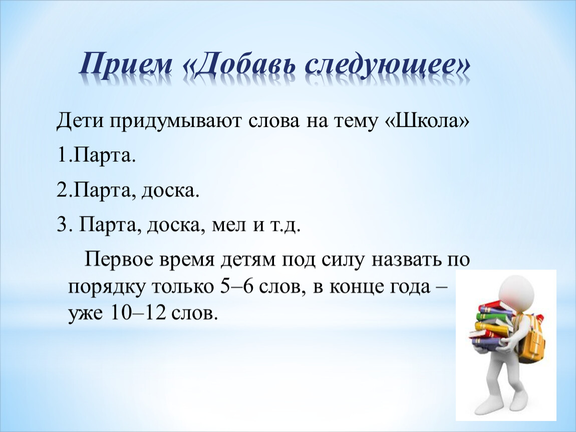 Первое время детям под силу назвать по порядку только 5–6 слов, в конце года – уже 10–12 слов.
