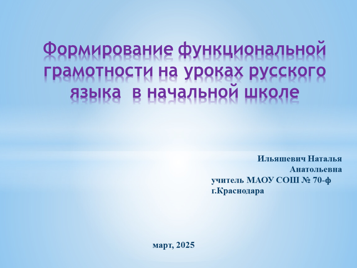 Формирование функциональной грамотности на уроках русского языка в начальной школе