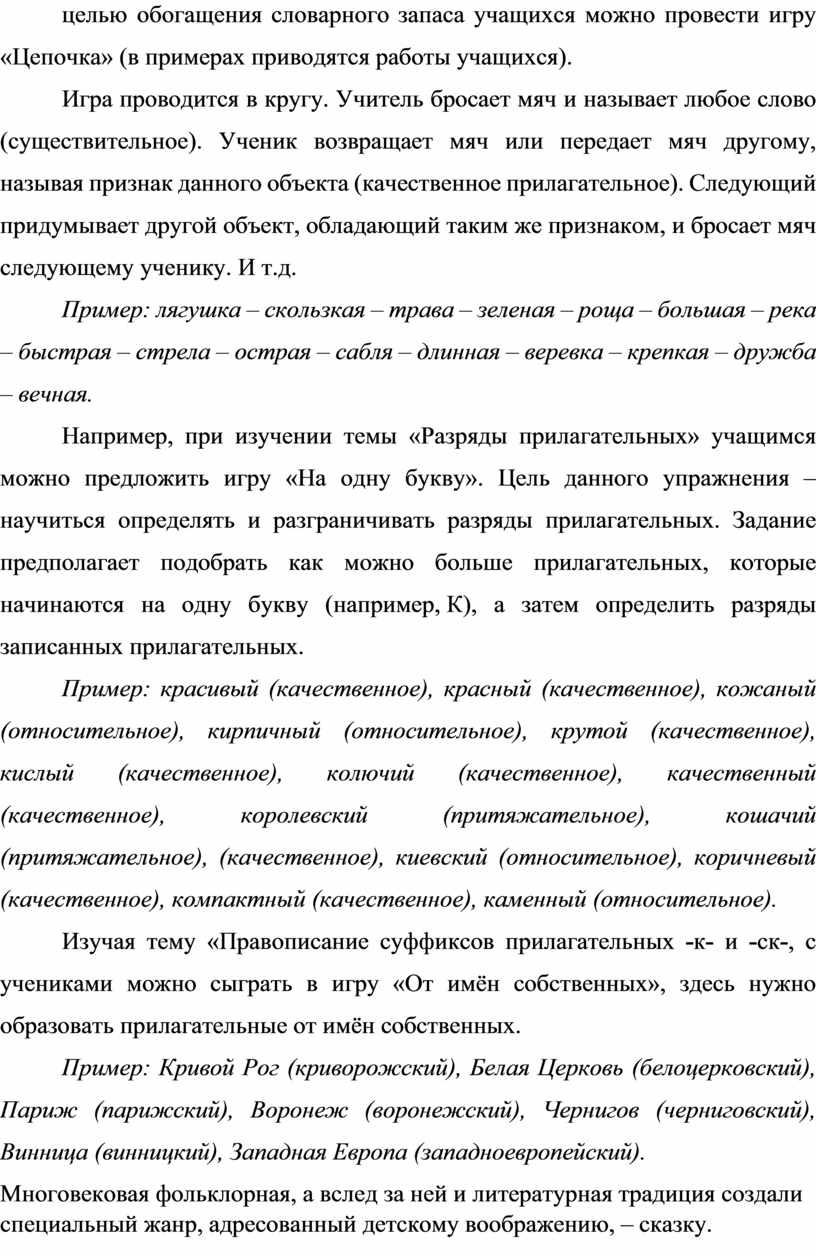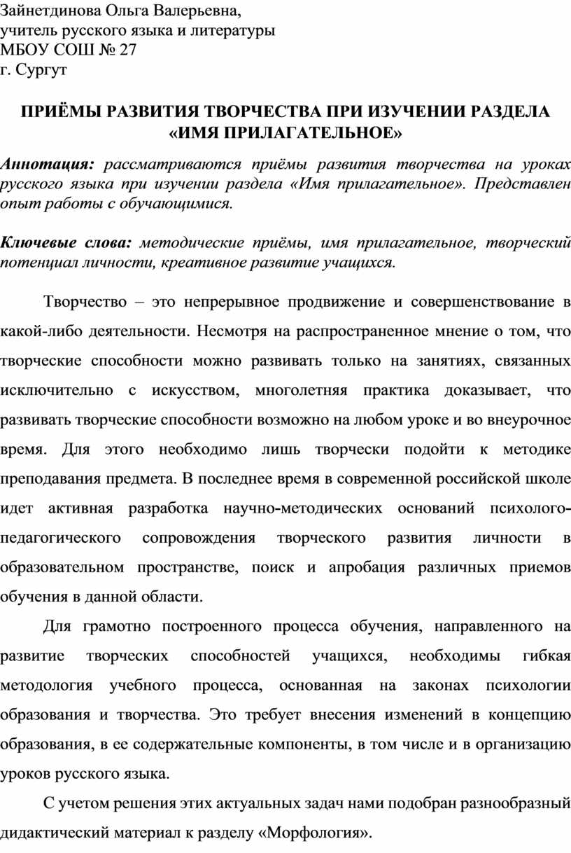 ПРИЁМЫ РАЗВИТИЯ ТВОРЧЕСТВА ПРИ ИЗУЧЕНИИ РАЗДЕЛА «ИМЯ ПРИЛАГАТЕЛЬНОЕ»